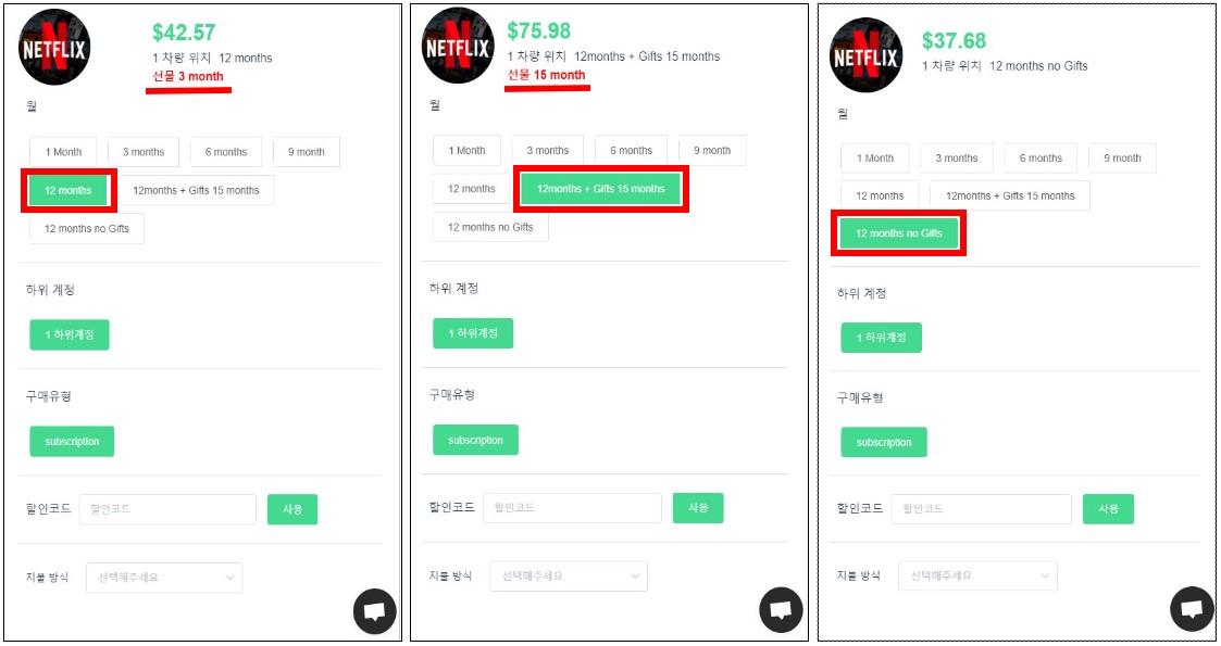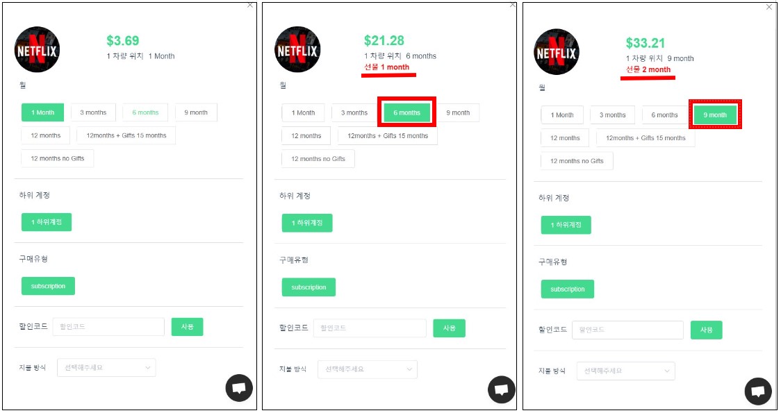 ◾ 1개월, 3개월 결제 시 추가 혜택 없음