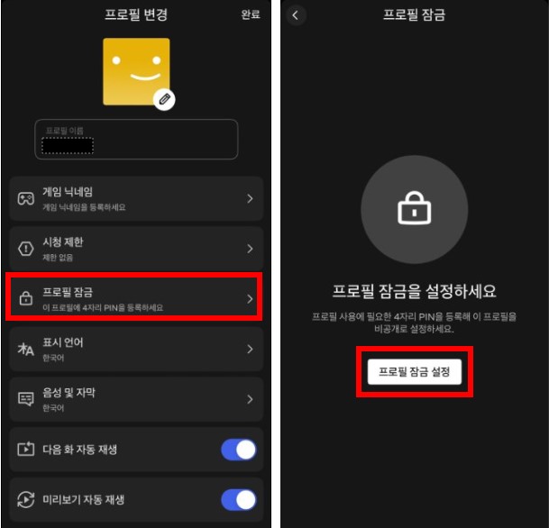 📌 프로필 관리 > 프로필 잠금 > 프로필 잠금 설정